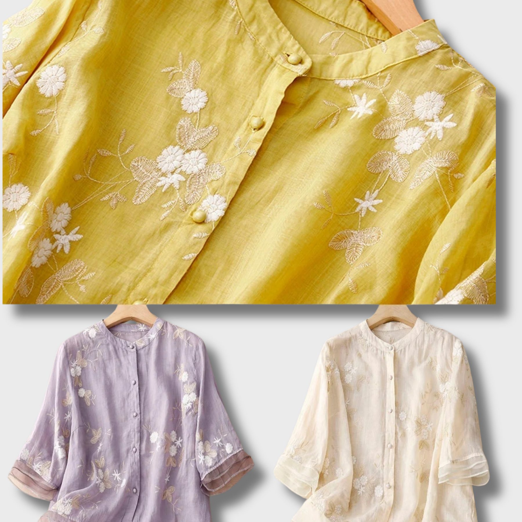 Add a touch of understated elegance to your wardrobe with the Gertrude™ Embroidered Cotton-Linen Blouse!  This delicate blouse features intricate embroidery, a soft mandarin collar, and a breezy cotton-linen blend for unmatched style and comfort. Perfect for casual outings, garden parties, or relaxed office days, the Gertrude™ blouse is your ideal companion for effortless sophistication.