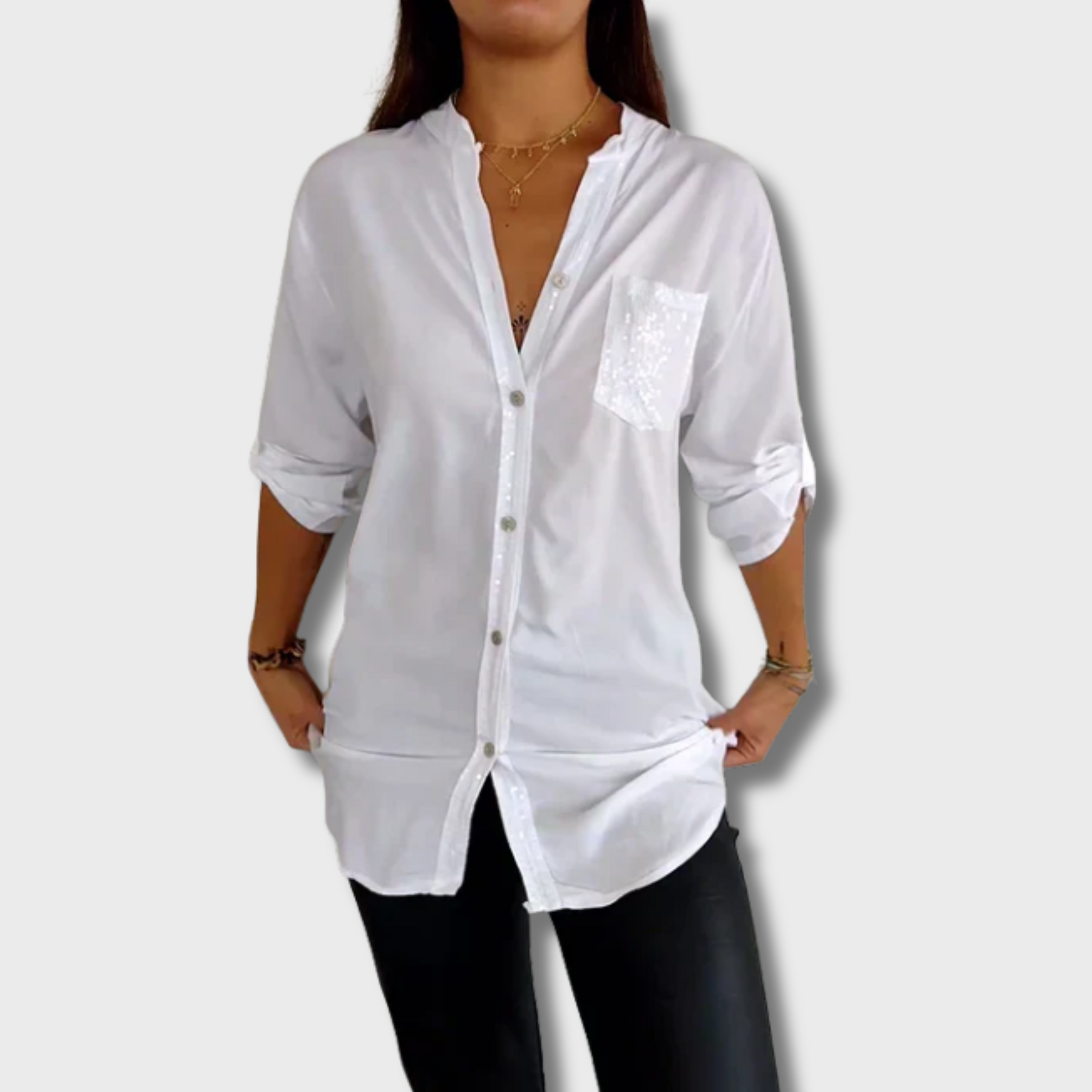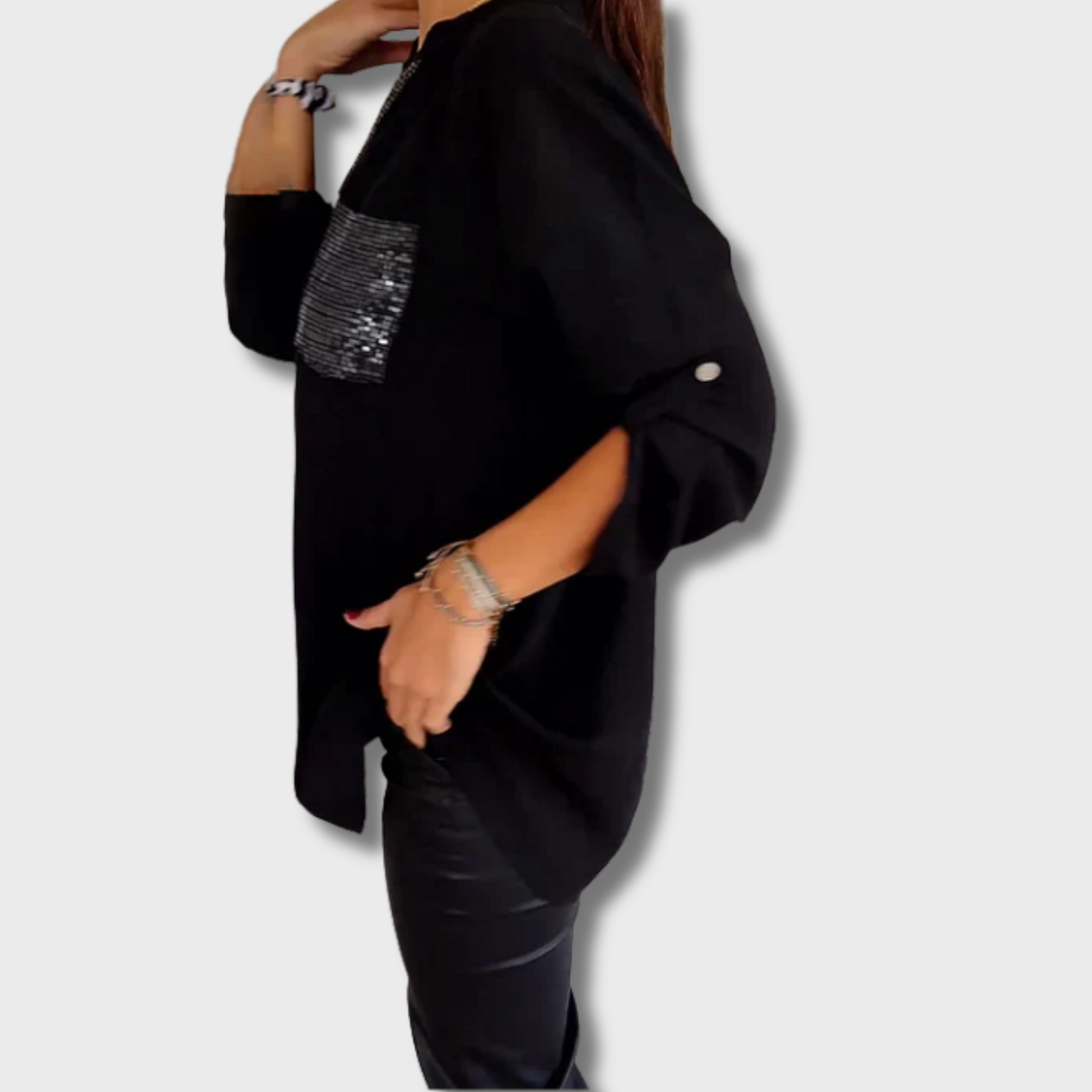 Elegant Sequin Detailing: The shimmering sequin trim and pocket provide a touch of glamour that takes this top from simple to stunning.